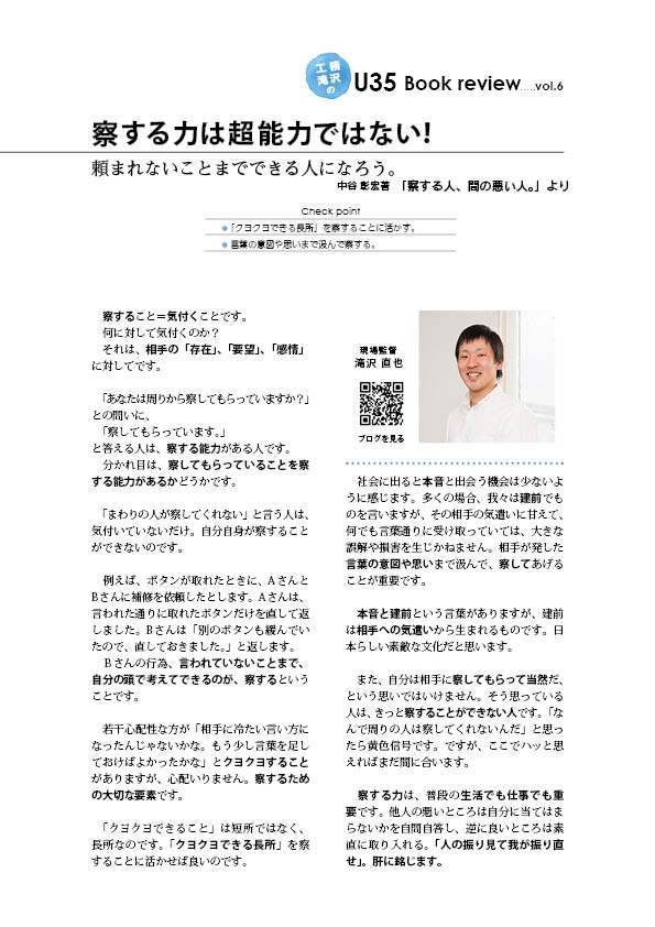 Vol.6|中谷彰宏著「察する人、間の悪い人。」|察する力は超能力ではない! |頼まれないことまでできる人になろう