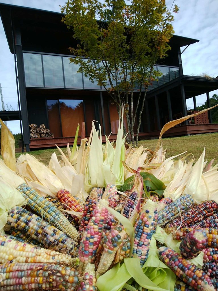 修道院 モロコシ収穫レインボーコーンはおいしくないようなので、