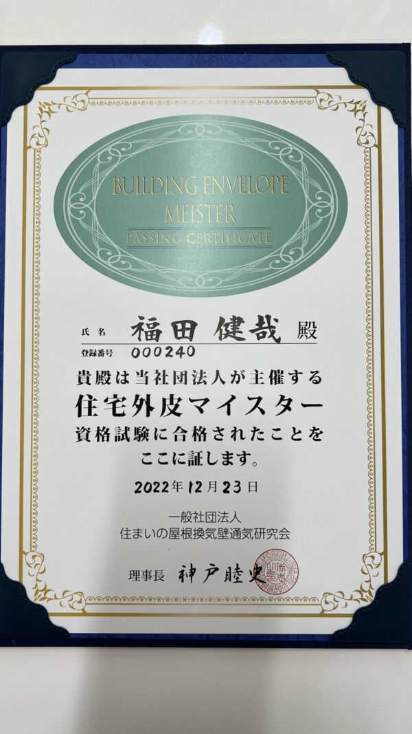 エルハウスでは、池原社長、奥寺さん、滝沢さん、それから大工さんの藤森棟梁が合格しました。