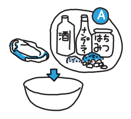 ① ボウルに豚ロース肉とAを入れ、20分ほど漬け込みます。