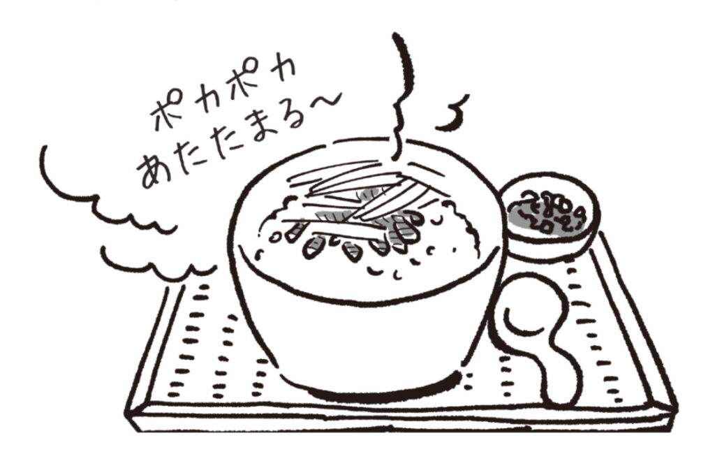 今回は炊いたごはんでお手軽に。やけどに気をつけて熱いうちにめしあがれ。