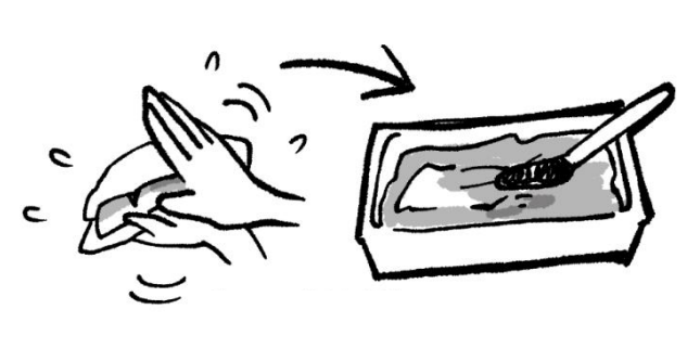 ④ 漬け込んだ切り身の表面の味噌はゴムヘラなどでしっかり落とす。
