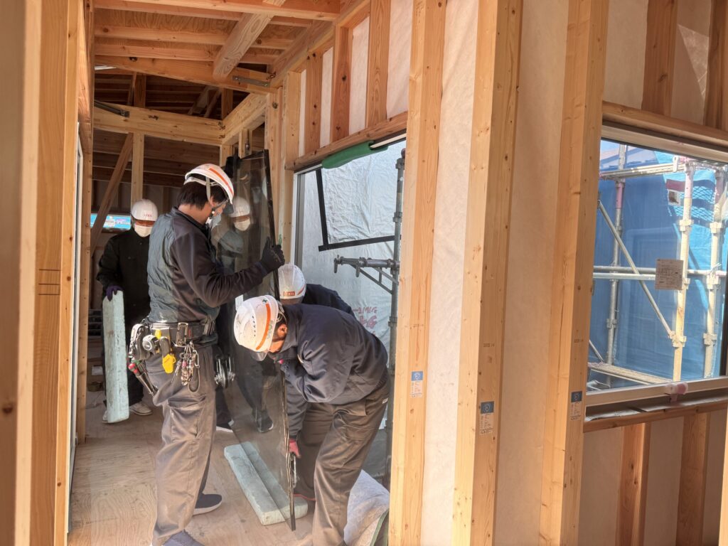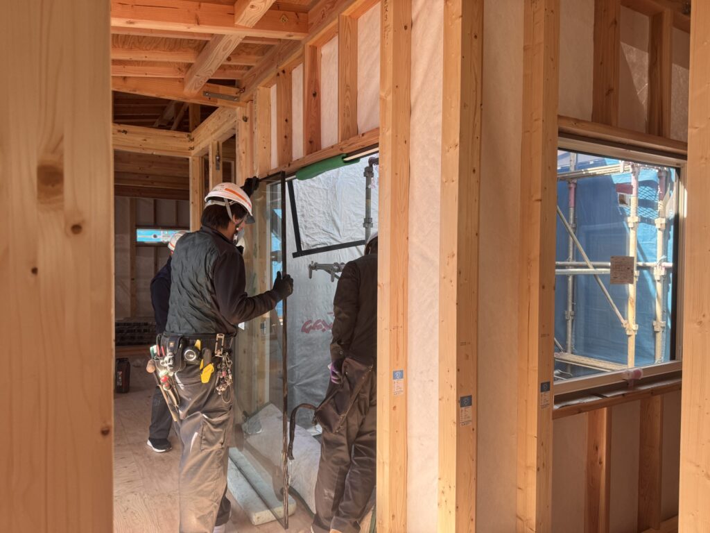 サッシはガラスも高価ですが、 このような作業費が建築コストに反映されています