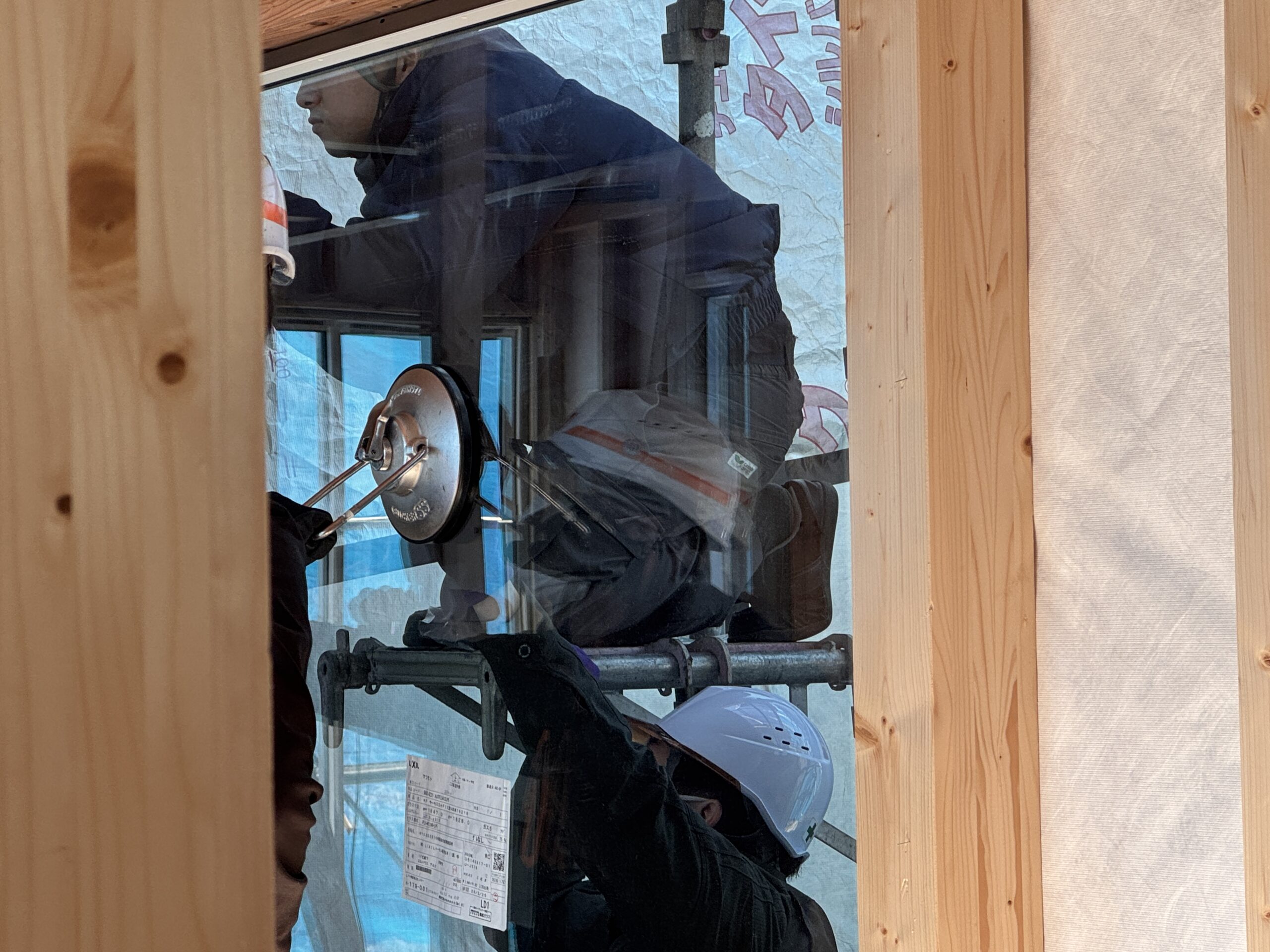 FIX窓 1.6m✖️1.8mのペアガラスの取り付けの様子です。