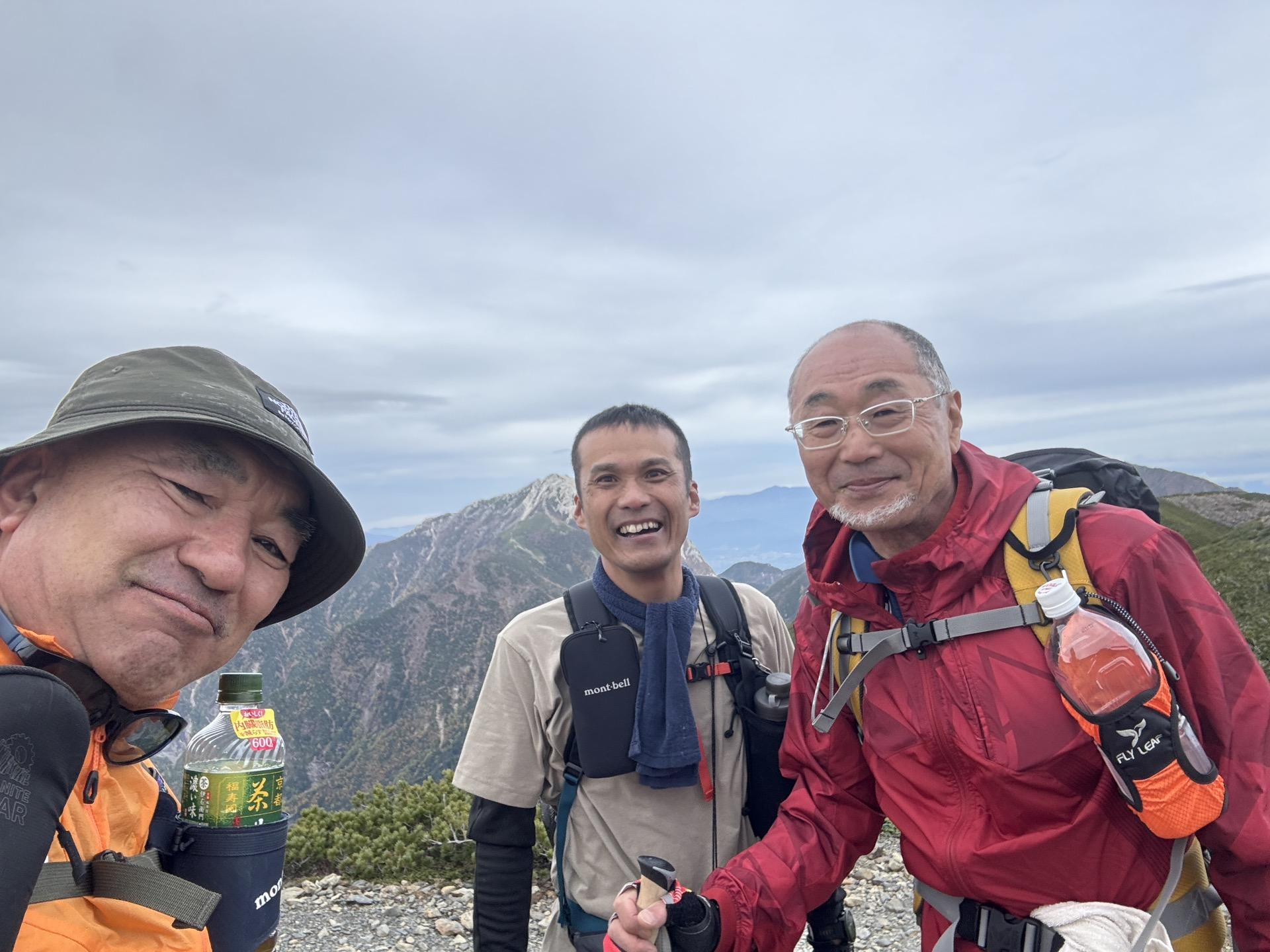 なんといってもと、振り向くと甲斐駒ヶ岳が目の前に 富士山、北岳が、重なる感じに 見える、のは、