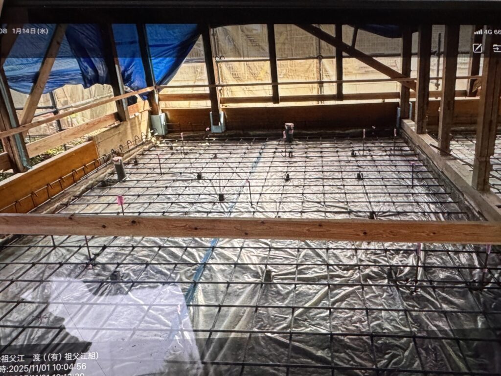 この段階で 家全体の土間も ベタ基礎のように作る ここで 土台の下となる