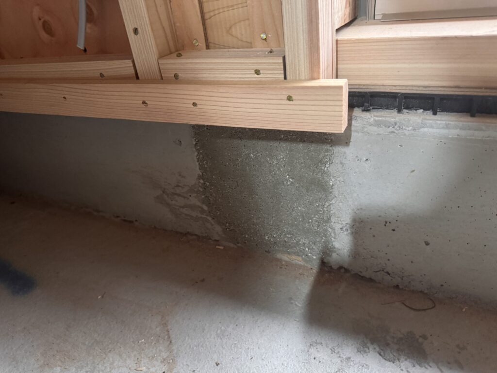 コンクリートを流仕込み 型枠が外れたところで 土台を敷き込む。