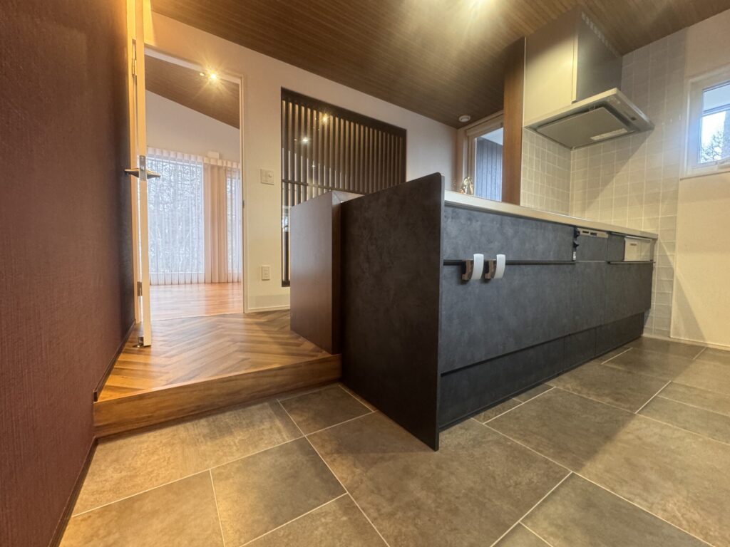 このお宅の特色は キッチンの床を一段 下げてみたところ これは お客様からの