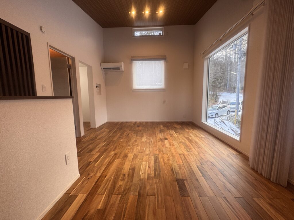 この大きい窓からは 太陽光の恵がたっぷり入ってきて リビングはポッカポカ。