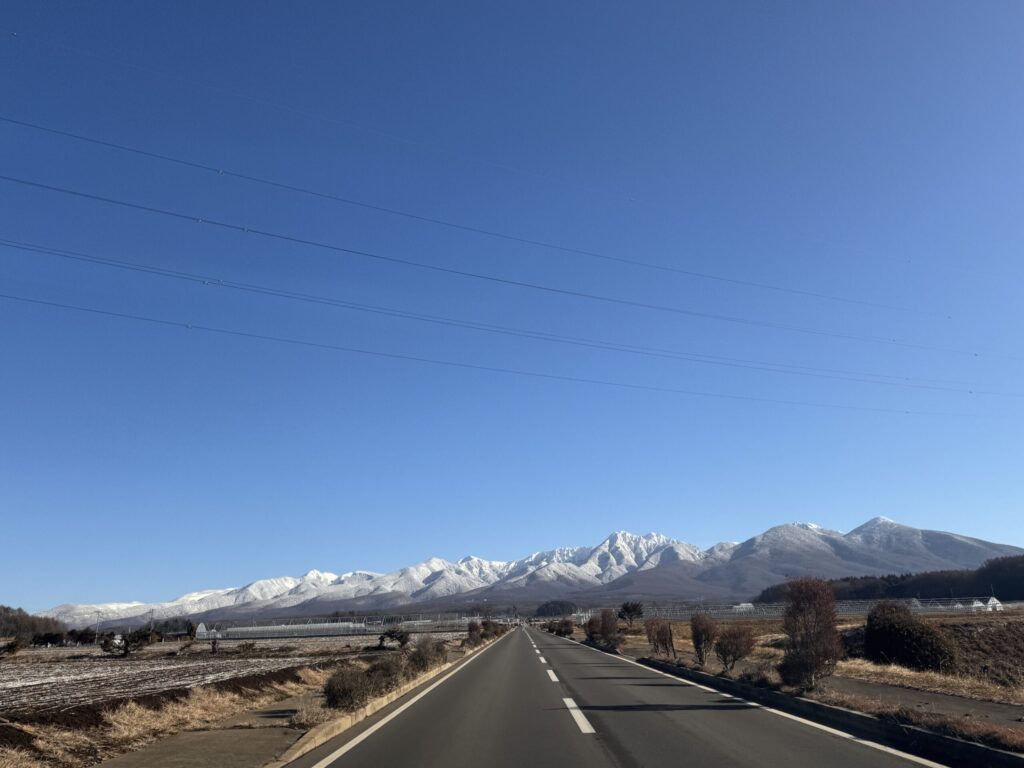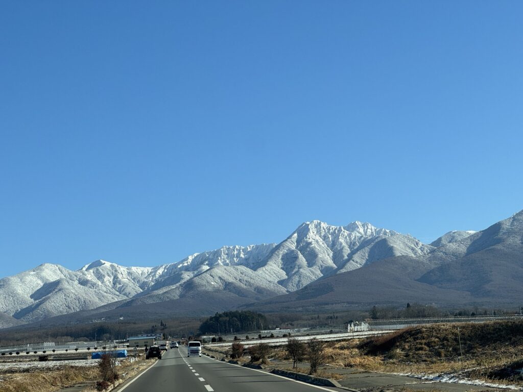 真っ青の空に 真っ白な八ヶ岳の峰々、  これを見ると