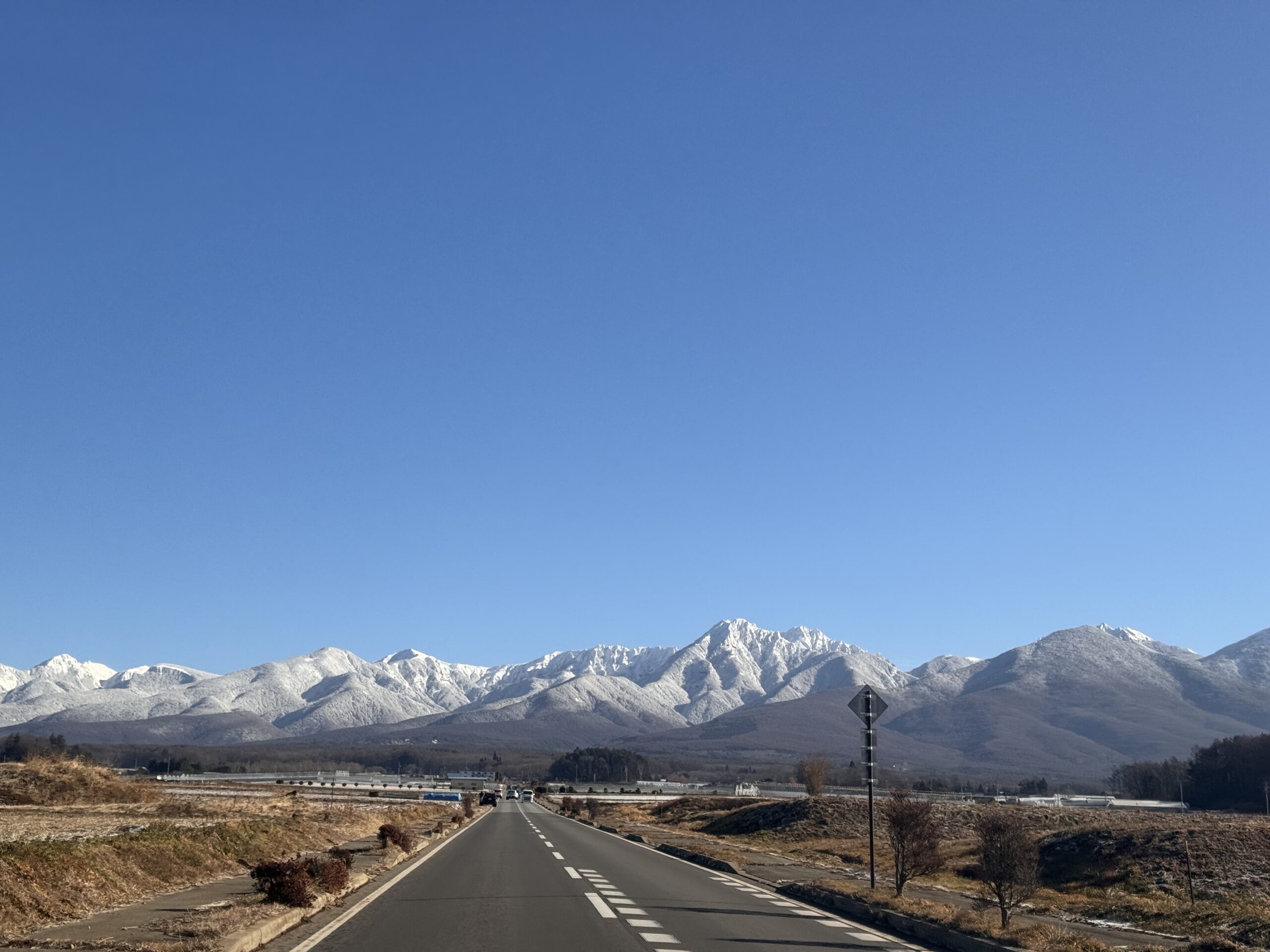 真っ青の空に 真っ白な八ヶ岳の峰々、  これを見ると