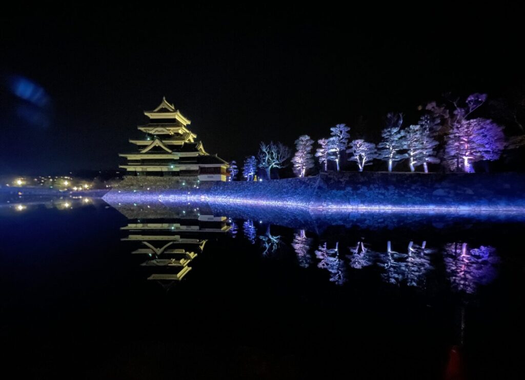 特に、夜のライトアップされた黒かべのお城、 街並みから浮き上がっているように見えとても素敵だ。