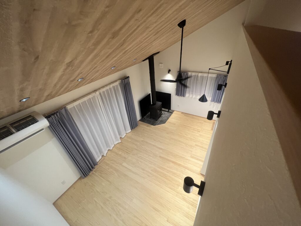 リビングを見下ろすように ロフトかと思いきや 天井の高さを最大限高くしていることから