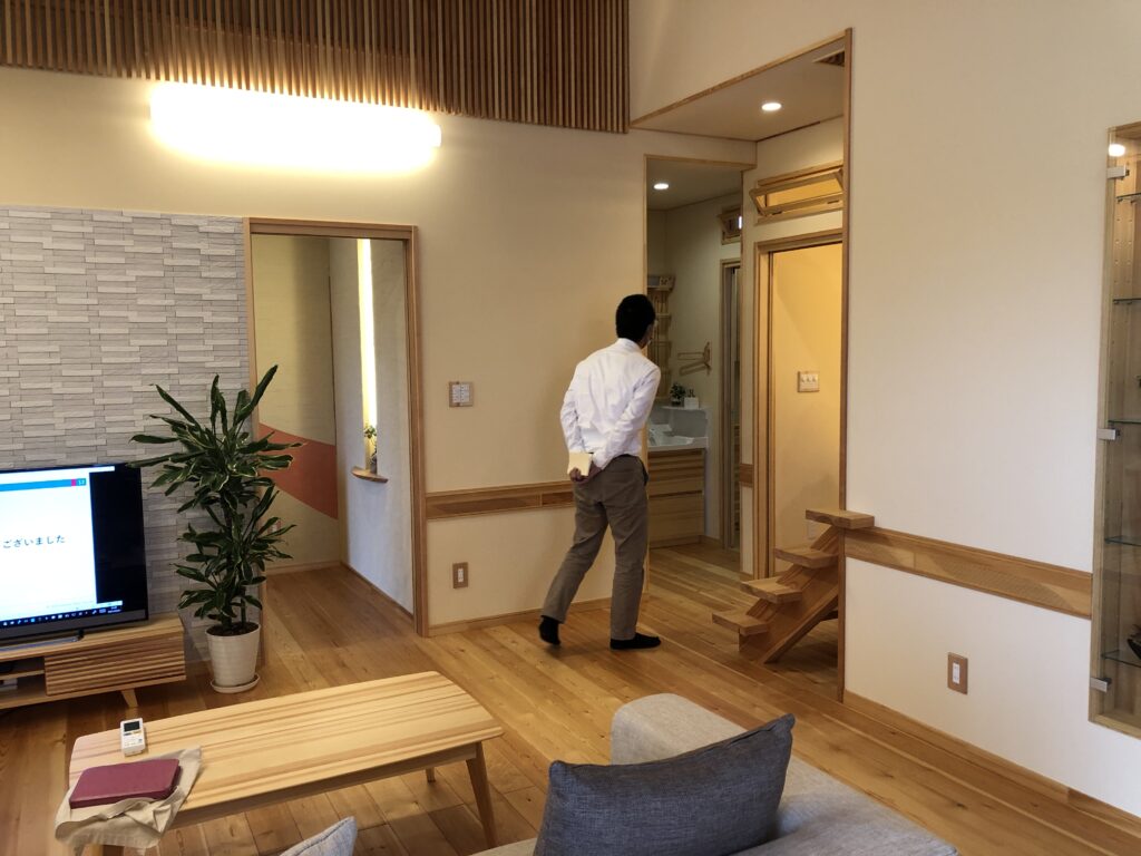 久々に こんなに凝った住宅を見せてもらった、 木の香りが家中充満している、ZEH住宅のつもりで見学に