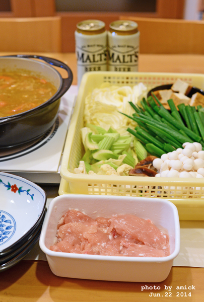 昨夜は、鶏胸塩麹漬け・きゃべつ・セロリ・人参・じゃがいも・ブナピー・椎茸・青ねぎ・厚揚げ・カリフラワーを用意。