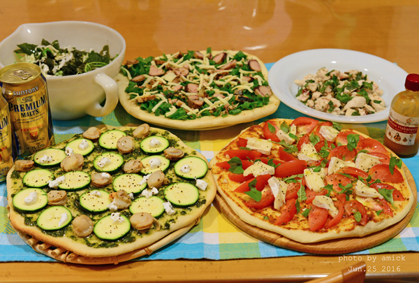 トマトピザには、バジル。和風ピザには、青ねぎ。ささみの梅和えには、青紫蘇。