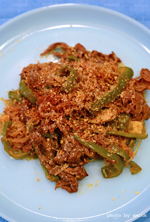 *チャプチェ:ピーマン・大蒜・秋吉台高原牛ももスライス・春雨・すりごま・コチュジャン・ごま油・甘麹・醤油・チリパウダー・黒酢