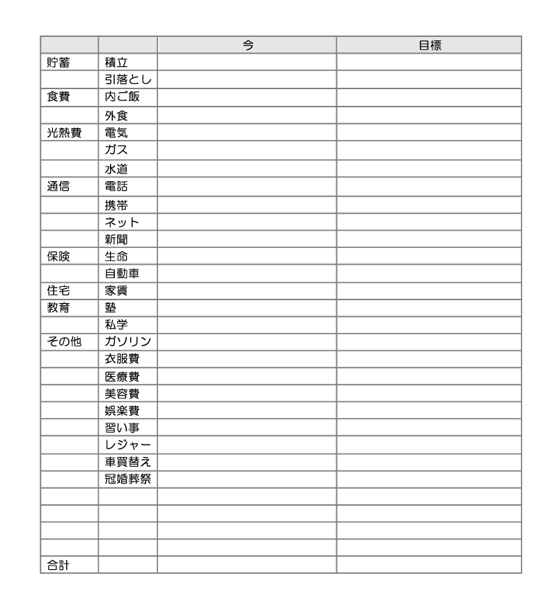 | 結婚 | 車 | 保険 | 土地 | 住宅 | 教育 | 介護 | 趣味 | 老後 | |