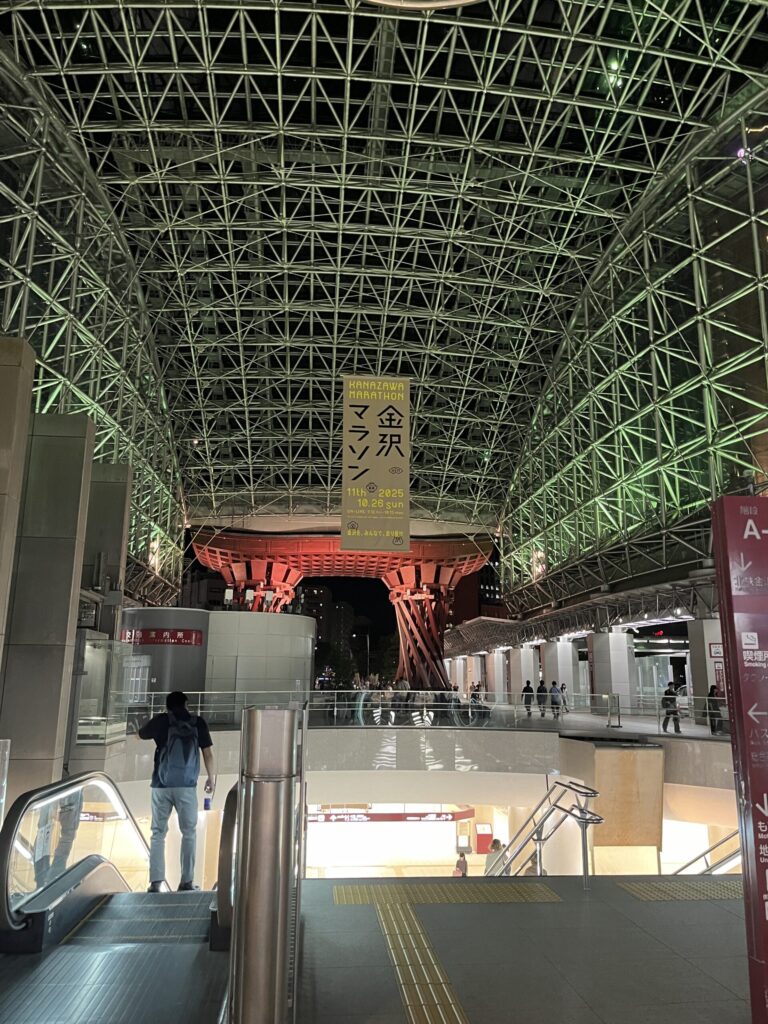 金沢駅には、10月26日に開催される金沢マラソンの弾幕も