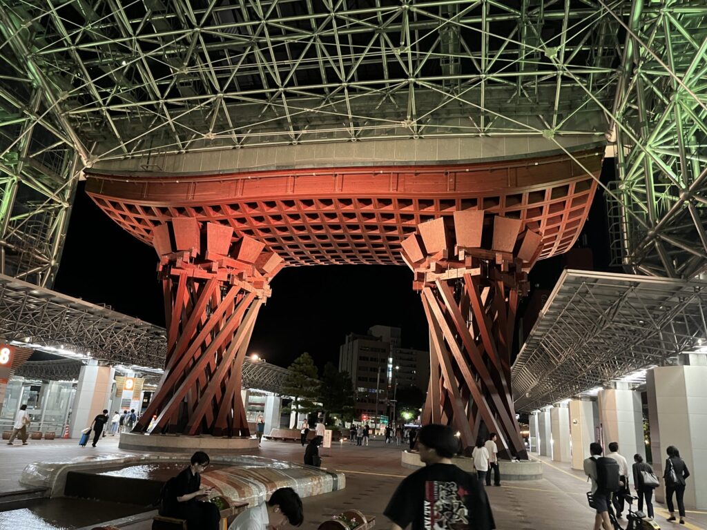 金沢駅前にある鼓門をみて、金沢駅前巡りを行い、