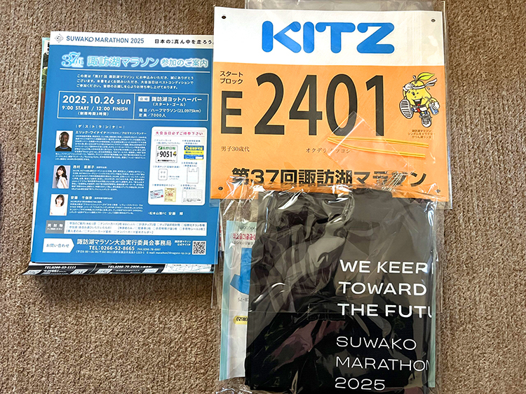 先日、諏訪湖マラソンのゼッケンや当日の案内が届きました!
