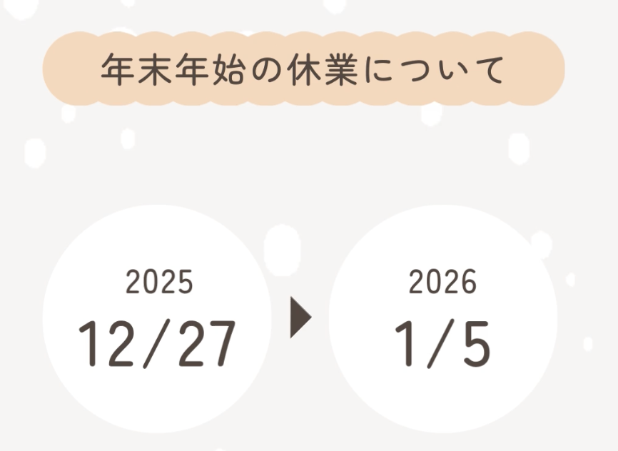 【休業期間】2025年12月27日(土)〜2026年1月5日(月)